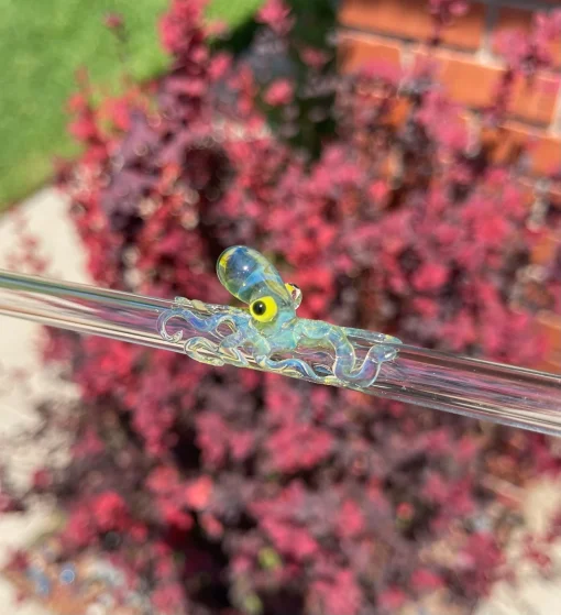 Handmade Glass Octopus Straw 5 – Custom Length, Unique Eco-Friendly Gift